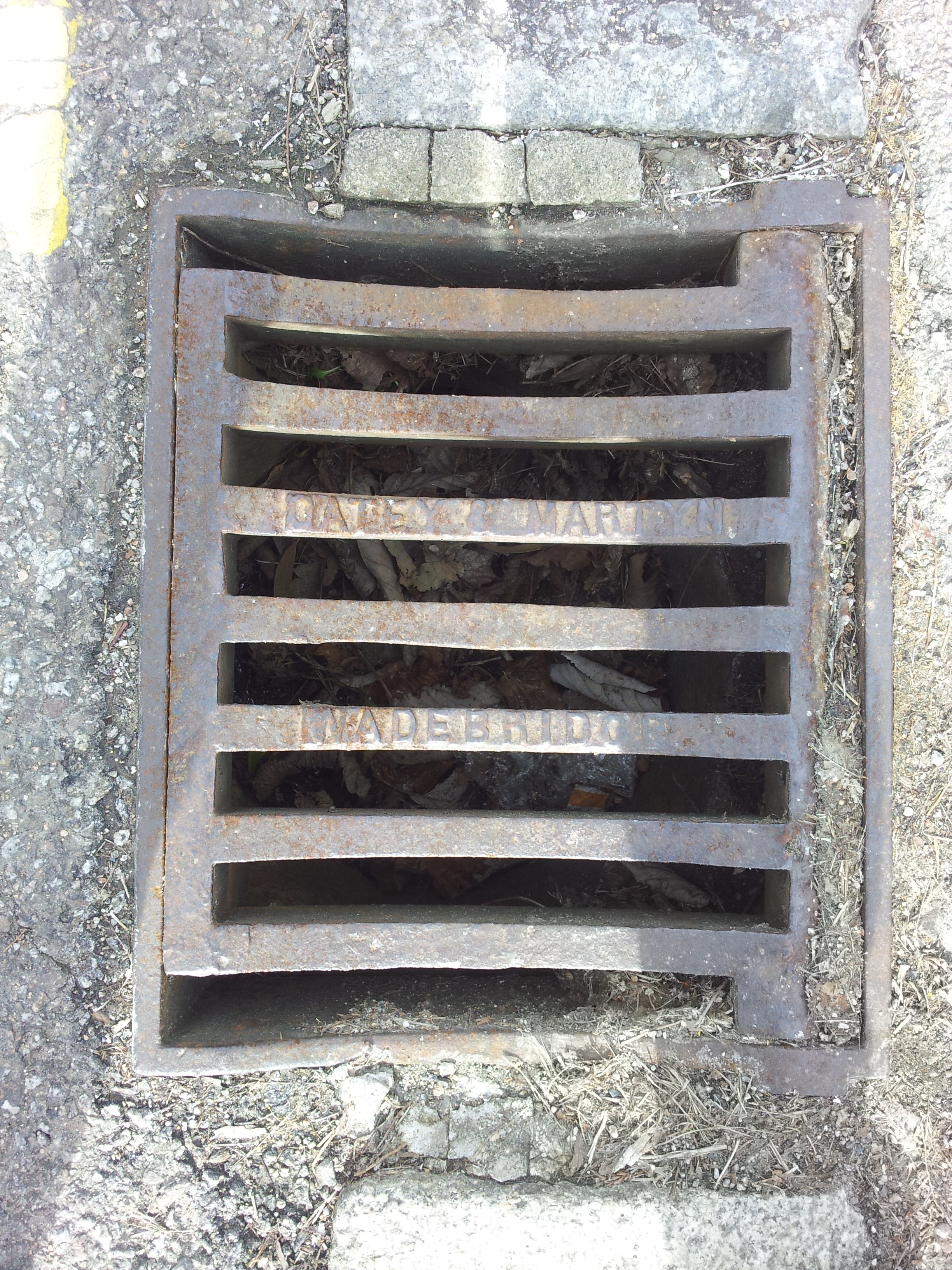 Gutter grill by Oatey and Martyn of Wadebridge (Old County Hall, Truro). There are at least four examples on the site.